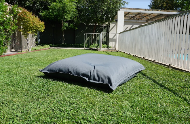 Cojín de 120 x 120 cm relleno de pelotas de poliestireno en tela de lona impermeable con filtro UV con cierre para lavado y funda pongee